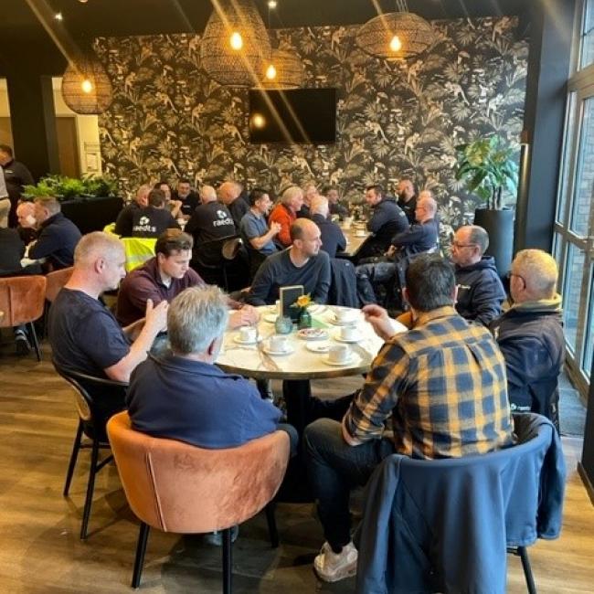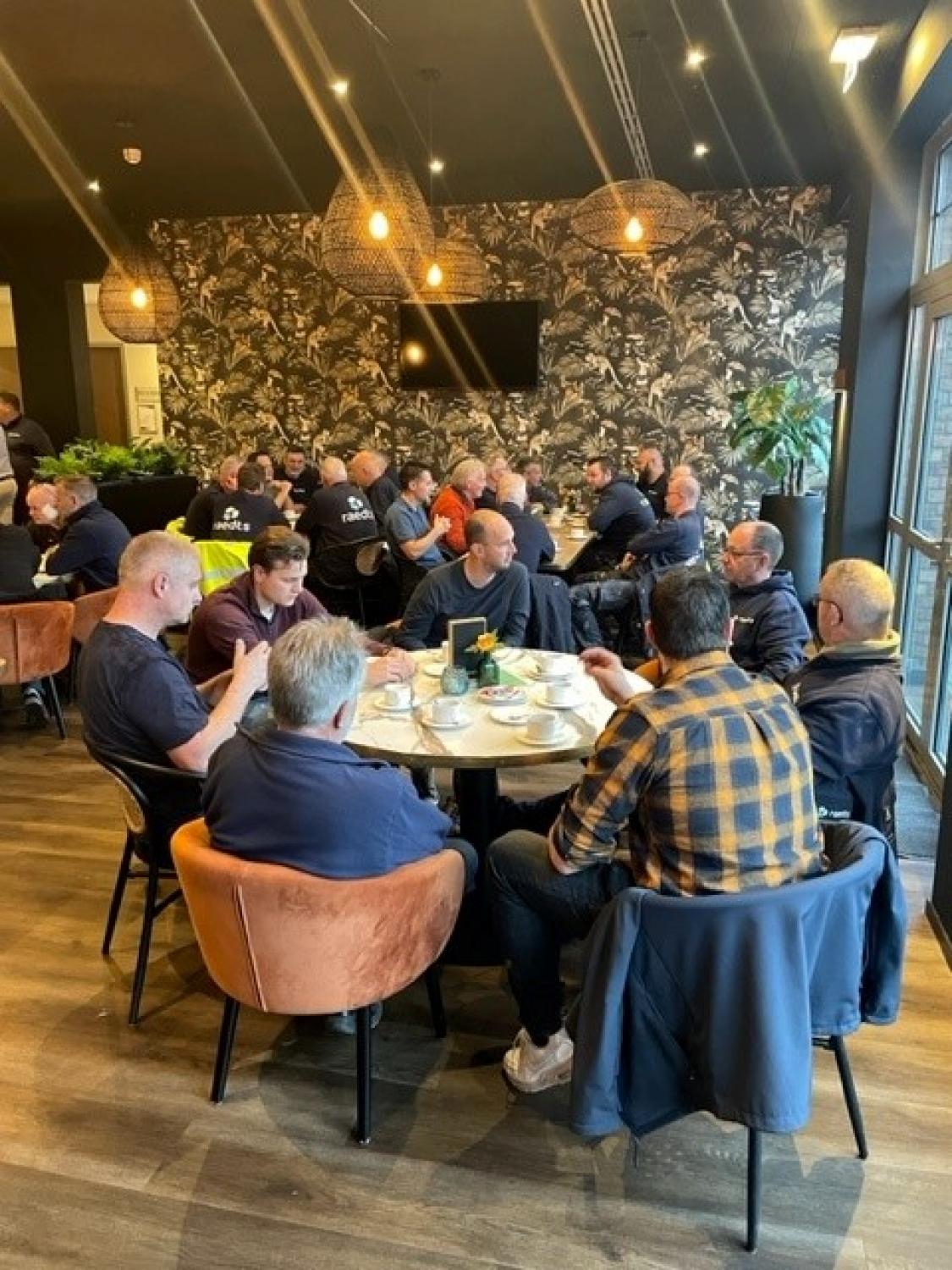 In november was het de bedoeling om een "Outdoor kwartaalbijeenkomst" te houden en de wandelschoenen aan te trekken, echter was het weer zo slecht dat we binnen aan de koffie met warme wafels zijn gegaan. Ook gezellig! Vervolgens werden alle medewerkers door Ruud Craenmehr uitgebreid bijgepraat over de laatste ontwikkelingen binnen Raedts.