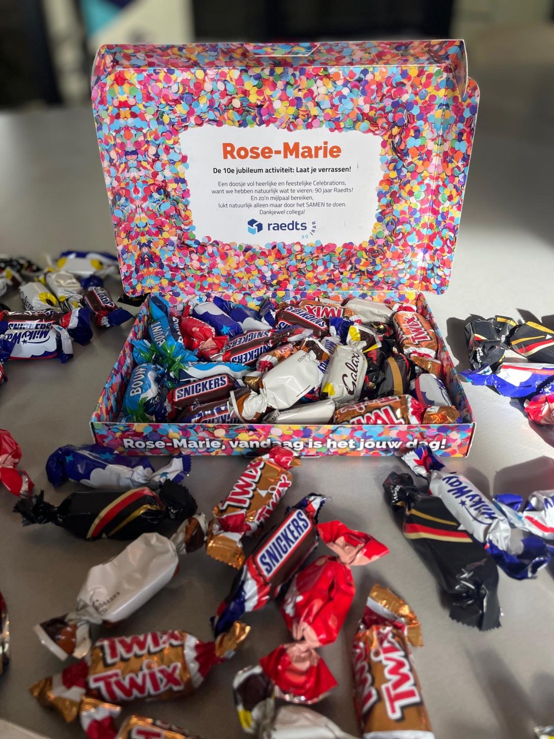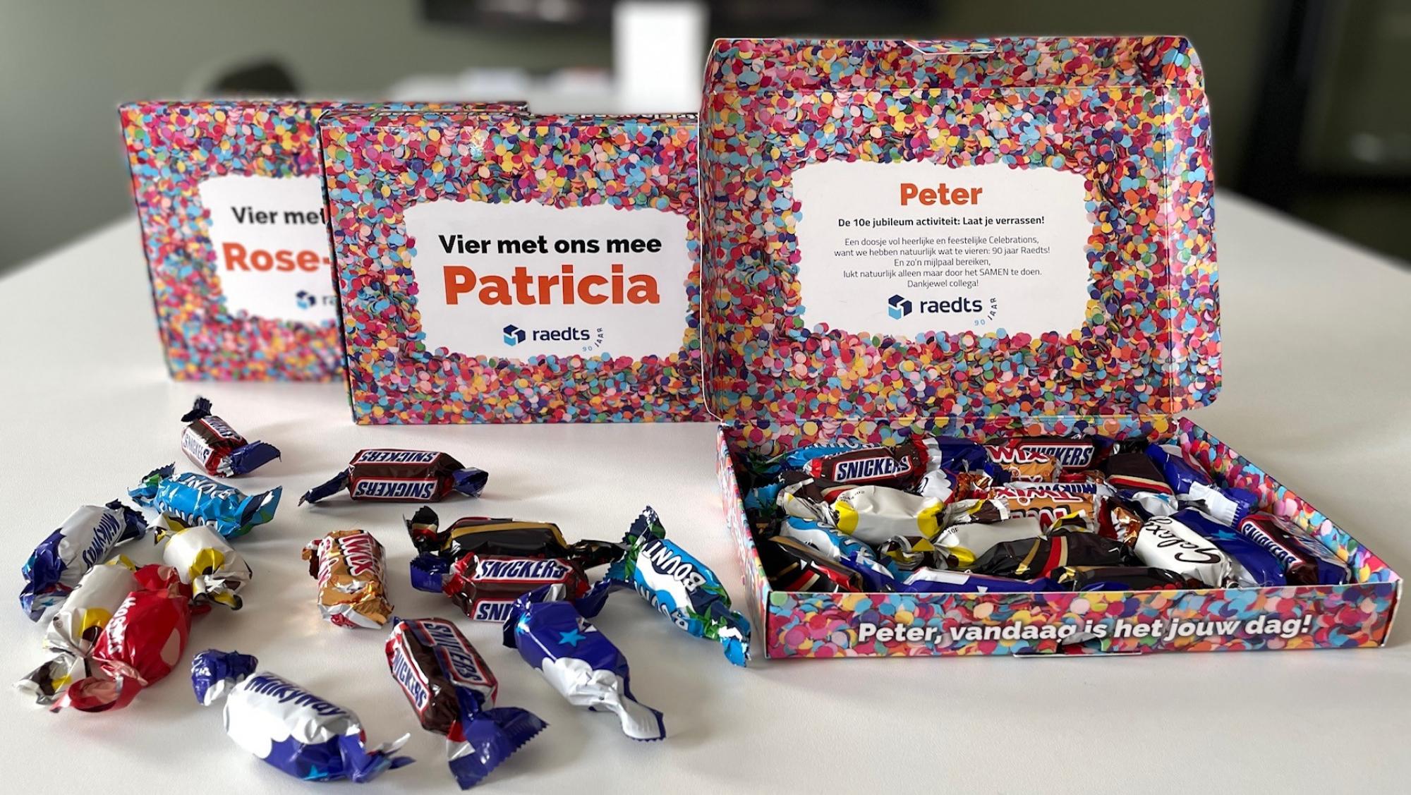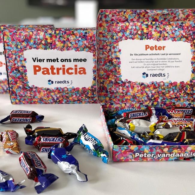 Deze maand was het thema: “Laat je verrassen!” Om ons bijzondere 90-jarige bestaan te vieren, hebben we al onze collega's een leuk en lekker presentje thuisgestuurd. Het bereiken van zo'n mijlpaal is natuurlijk alleen mogelijk dankzij ons fantastische team. Daarom verrasten we hen met een doosje heerlijke en feestelijk Celebrations, als blijk van onze waardering.