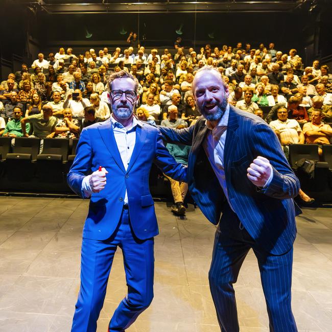 Een heel bijzondere activiteit: een bezoek aan de Schouwburg in Venray. Samen met onze partners en een heel aantal oud-collega’s was er een bijzondere en feestelijke avond in de Schouwburg, verzorgd door Omdenken.