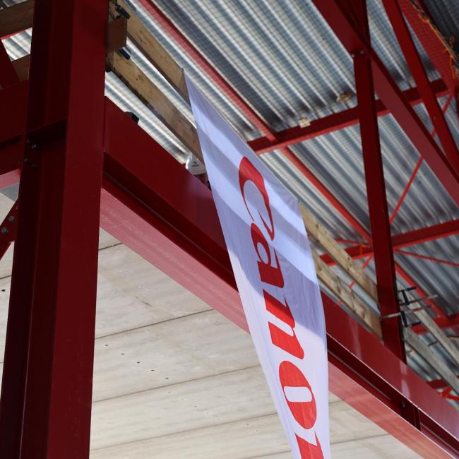 Op 8 mei vierden Canon Production Printing en Raedts samen met 80 genodigden het bereiken van het hoogste punt van de nieuwe aanbouw 1R in Venlo. Deze uitbreiding vormt een belangrijke toevoeging aan de bestaande productielocatie van Canon Production Printing.
