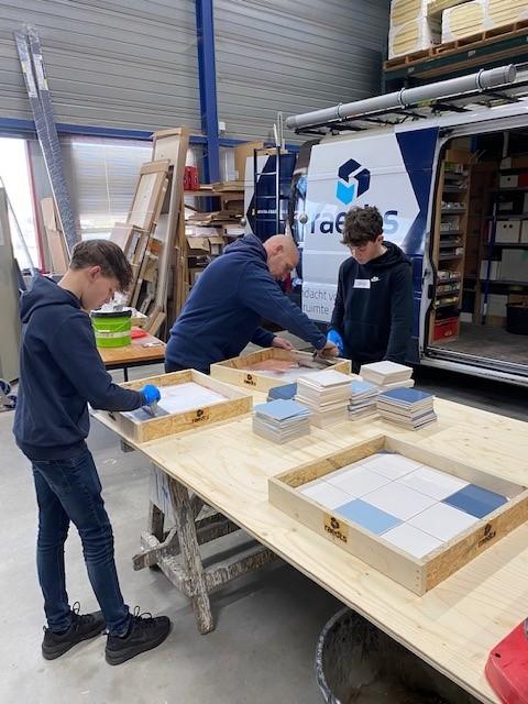 De leerlingen zijn tijdens de Doe Dagen bij ons na een rondleiding zelf aan de slag gegaan als tegelzetter en timmerman, hebben een renovatieproject bezocht en ze konden met een VR bril verder kennismaken met diverse werkzaamheden op de bouw.