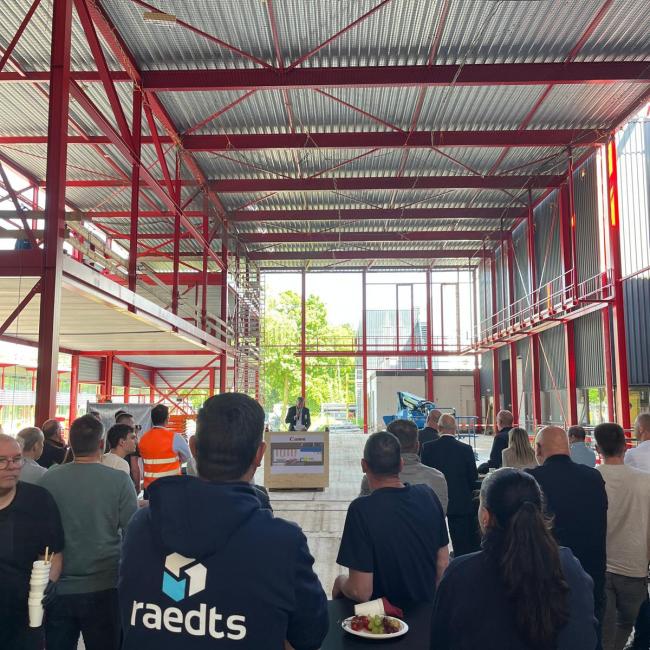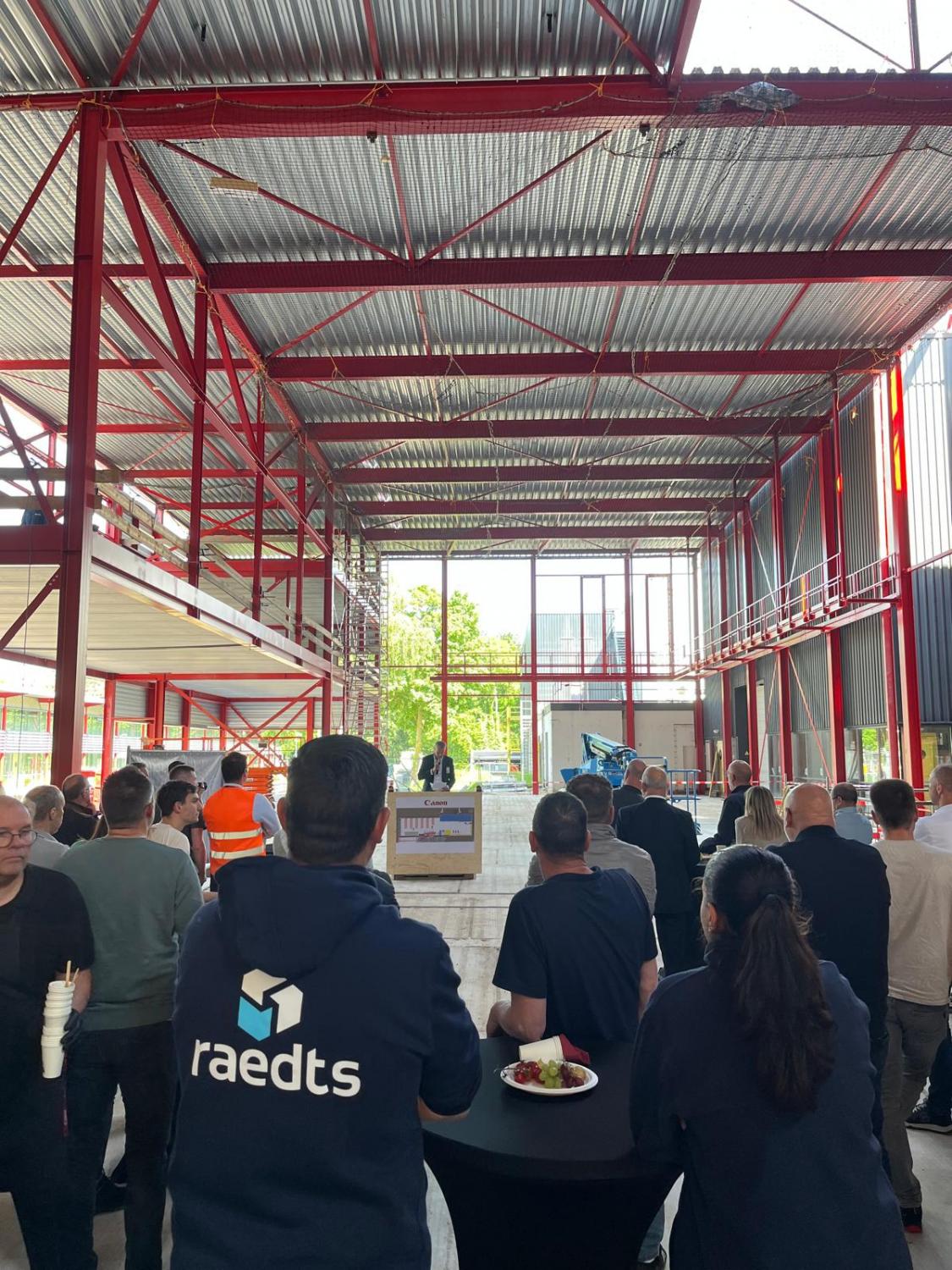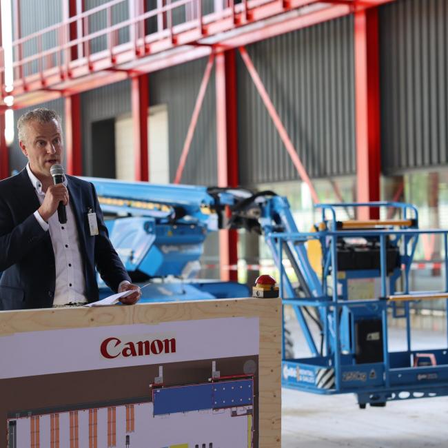 Op donderdag 8 mei hebben we de hoogstepuntviering gehad. De oplevering volgt naar verwachting eind 2025. Een belangrijke stap voor Canon voor een gasloze productielocatie.