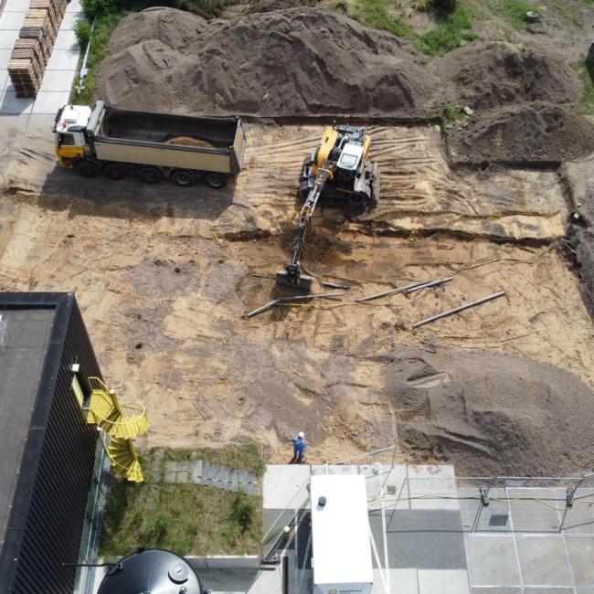 Een belangrijk aandachtspunt is het onder peil uitvoeren van werkzaamheden zonder de productie te verstoren. Verspreid over het terrein liggen cruciale leidingen die intact moeten blijven. De funderingspalen worden daarom met grote precisie tussen de leidingen geplaatst. Tegelijk verlopen de bouwwerkzaamheden deels in de bestaande productieruimten, wat zorgvuldige afstemming vraagt.