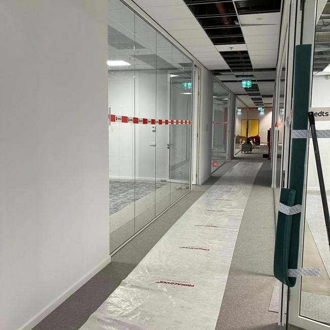 De volledige vleugel van 2200 m² heeft een complete metamorfose ondergaan en straalt nu een frisse, moderne uitstraling uit. Het project omvatte onder andere: